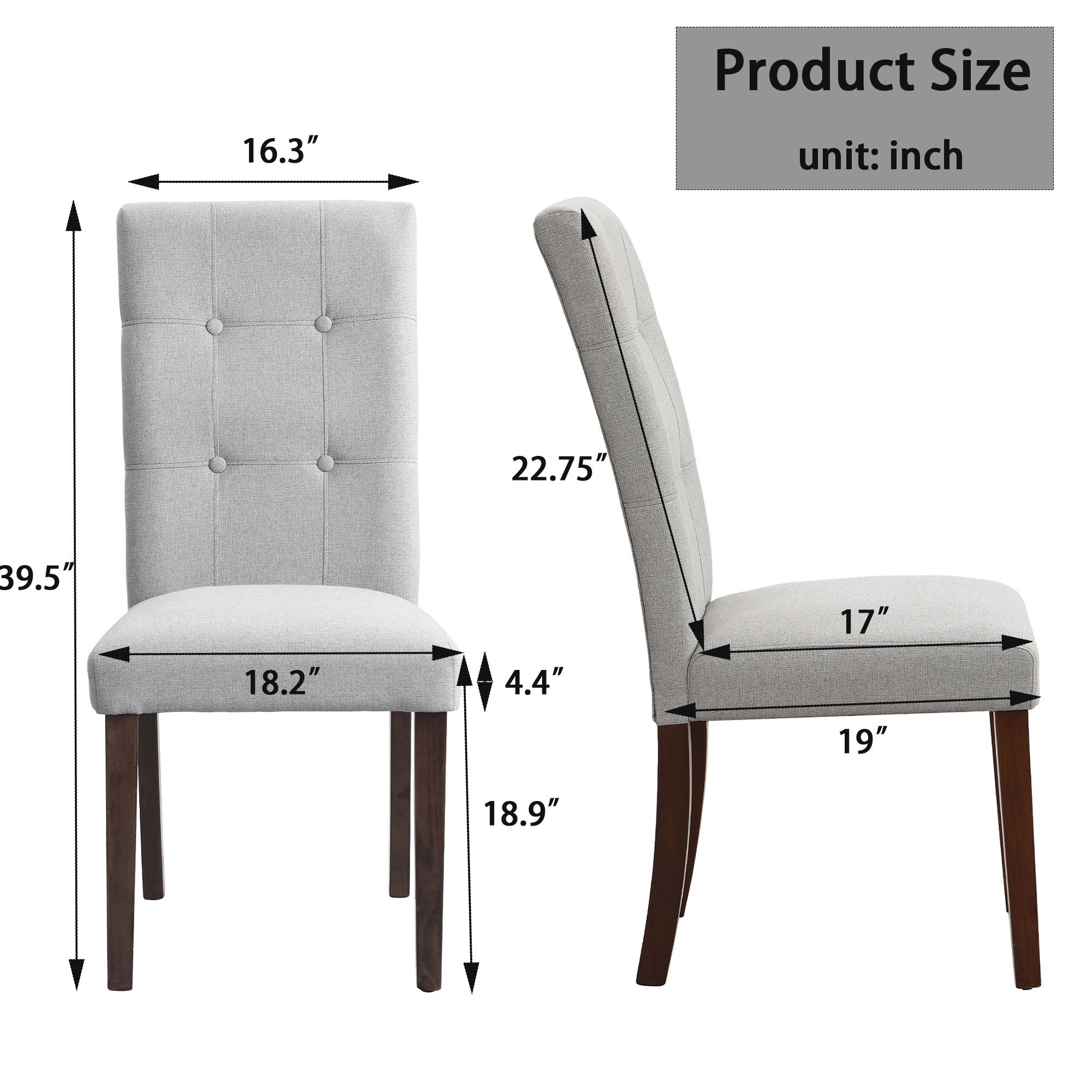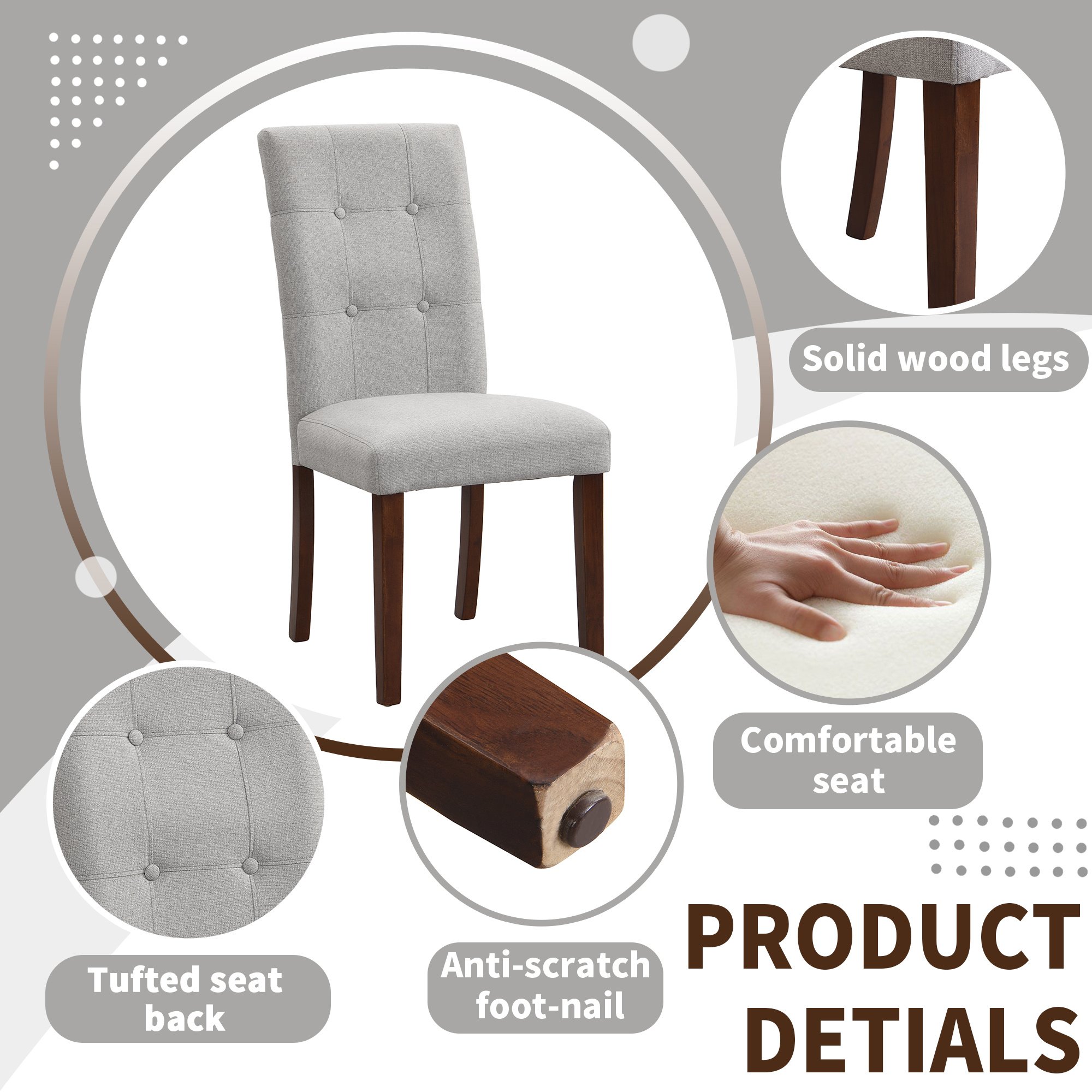 [Comfortable & Durable]Experience unparalleled relaxation with our Luxury Upholstered Fabric Kitchen Chairs, boasting plush padded seats and backrests that are perfect for long dinners or cozy conversations. The legs are made of solid wood, which are strong and durable and ensure the stability of the whole dining set. Equipped with anti-scratch foot-nail, our dining chairs protect your floors from scratches. You can confidently move them without worrying about damaging your space.