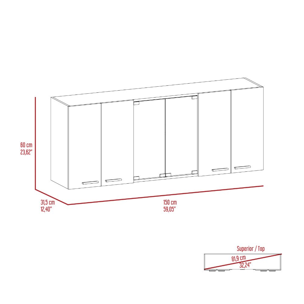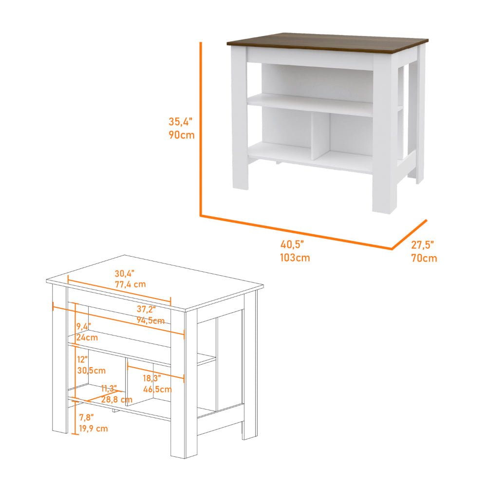 Set includesOne (1) wall cabinet and one (1) kitchen islandFinish ColorWhite and WalnutMaterialsManufactured woodKitchen Island dimensions35.4 inches high x 40.5 inches wide x 27.5 inches deepWall Cabinet dimensions23.62 inches high x 59.05 inches wide x 12.4 inches deepNumber of doors6Number of shelves3
