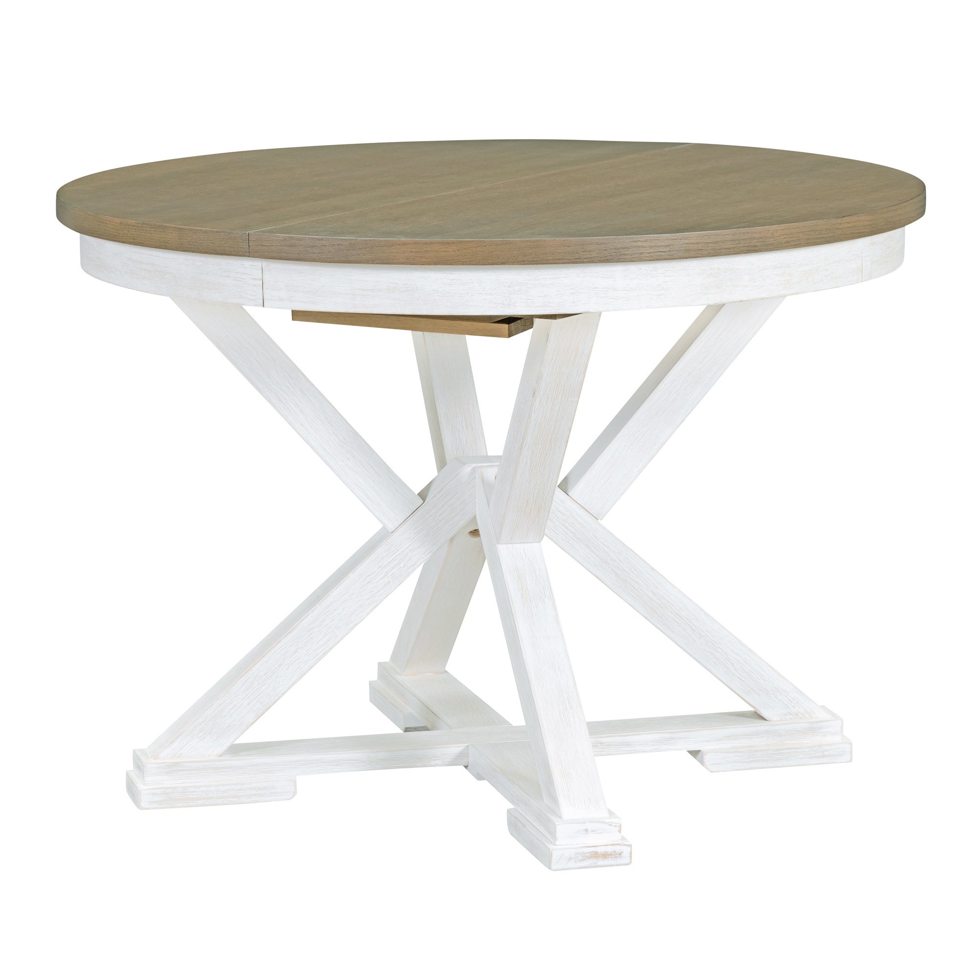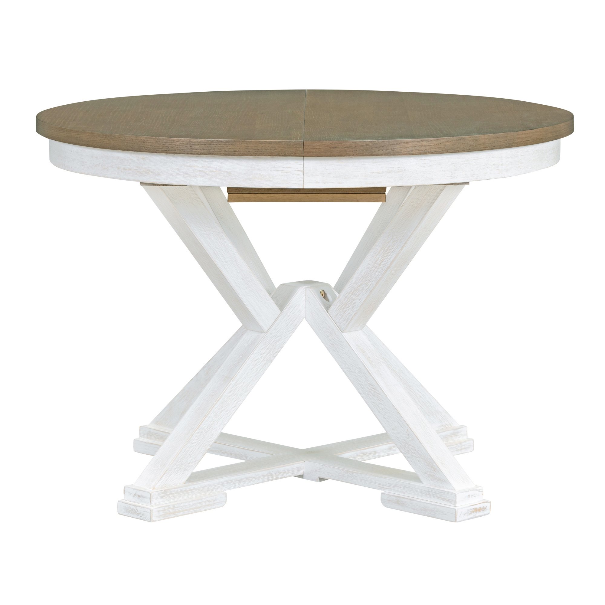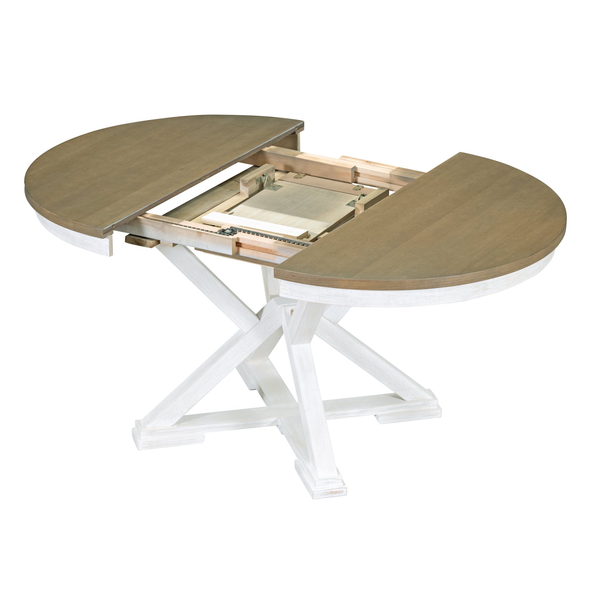 Adjustable Dining Table LengthThe Round Dining Table comes with a 12-inch leaf that creates an oval dining table, which is used to accommodate more people and for different lengths of use. There are two colors to choose from, gray and brown. The total length of the dining table is 54 inches and 42 inches with the boards removed. You can switch the table back and forth between round and oval shapes by inserting or removing leaves as needed. The adjustable design makes your daily life easier.