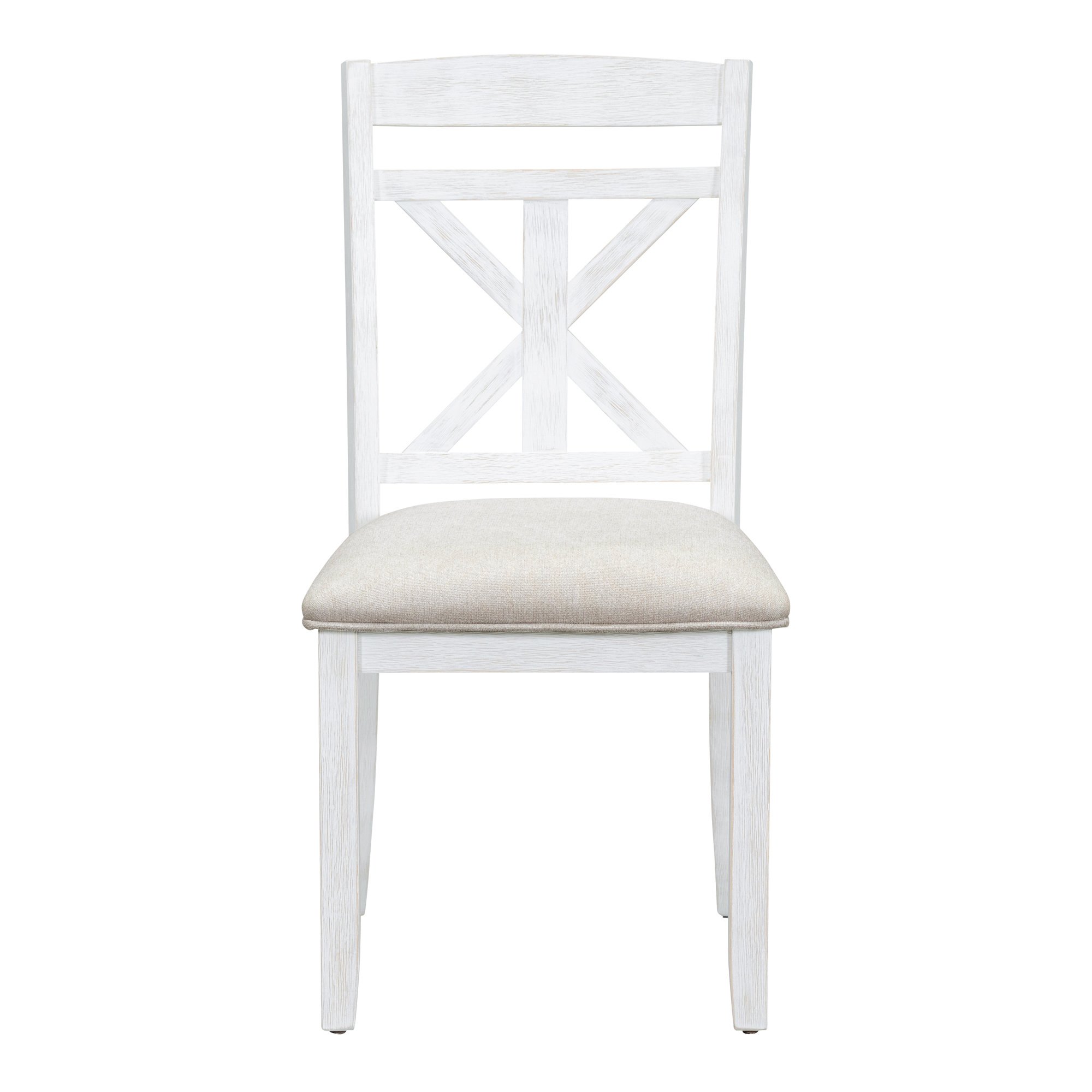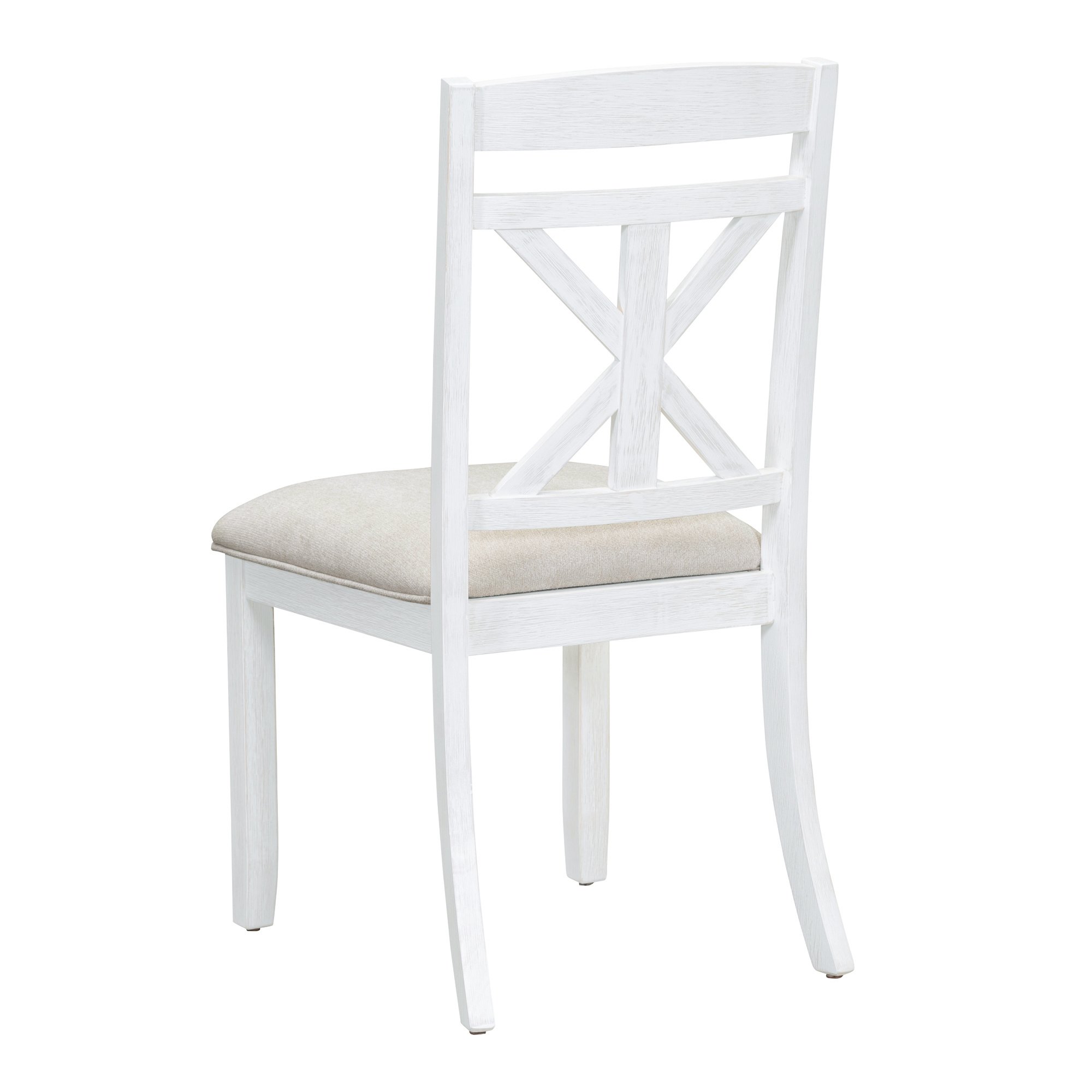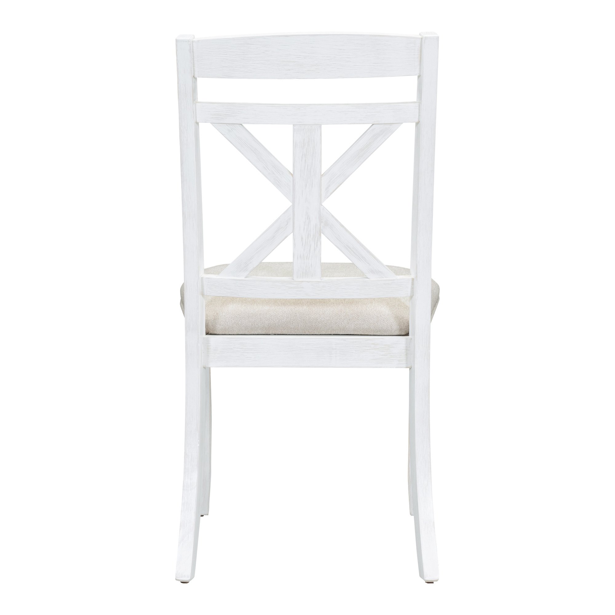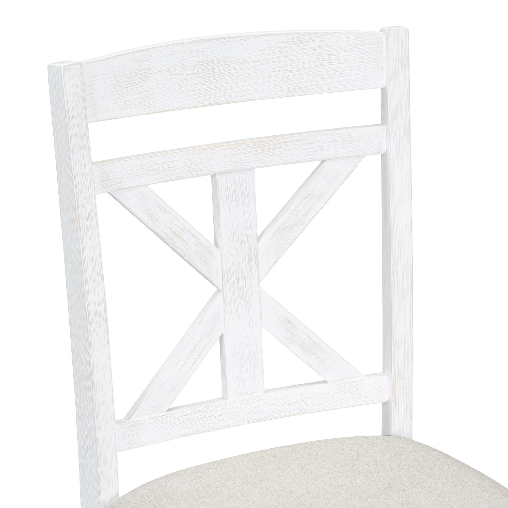 High Quality: This vintage dining table set with wood pattern has good quality and adds understated elegance to your dining room. The main frame of the dining table set is made of solid rubberwood to ensure stability and durability for daily use. All four chairs are wrapped in linen as the seat cushion and filled with soft foam to provide you with a comfortable sitting experience. The weight capacity of the table and chair is separately 661 LBS and 330 LBS/PCS.