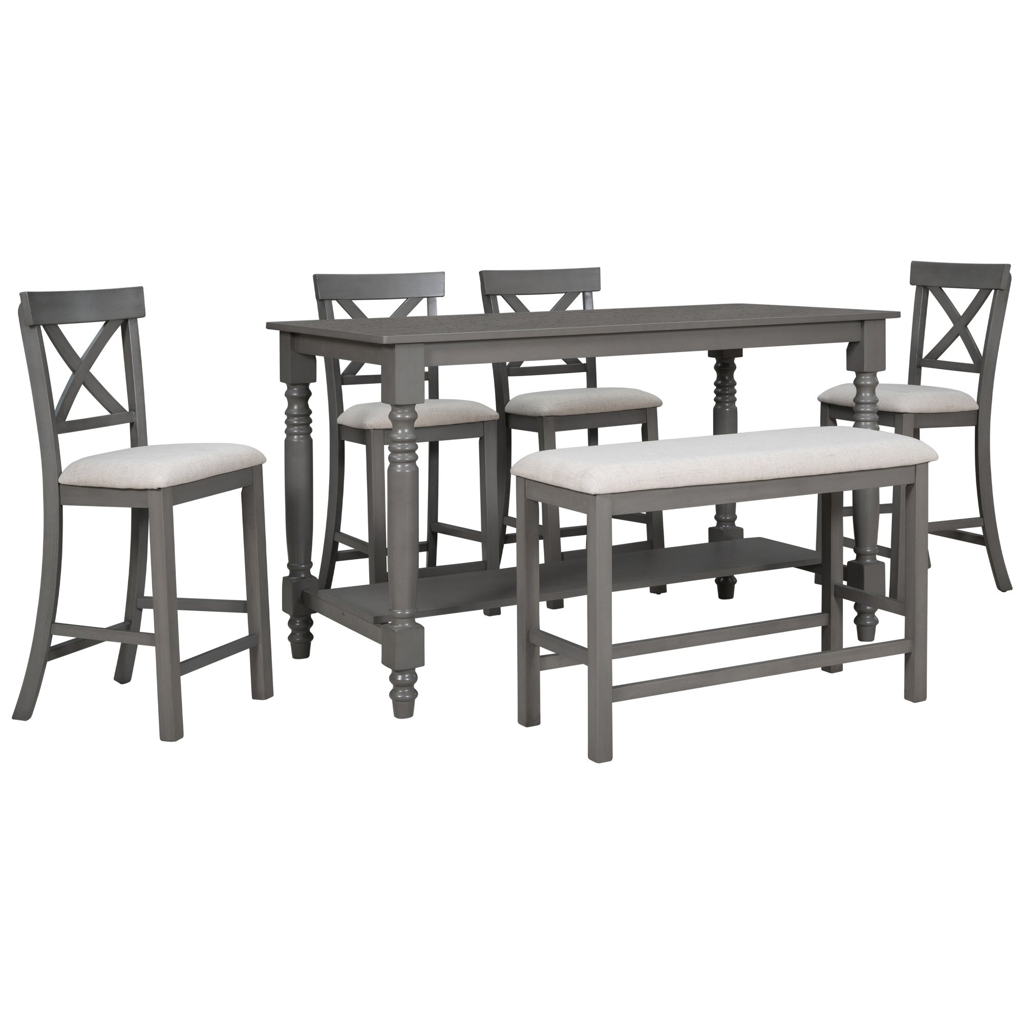 Elegant Appearance: The 6-piece counter height dining set consists of a table, four chairs and a bench. The multifunctional table is designed to fit in any space, and its classic, elegant design creates timeless appeal. Perfect to gather around, this essential table complements any room Decor.