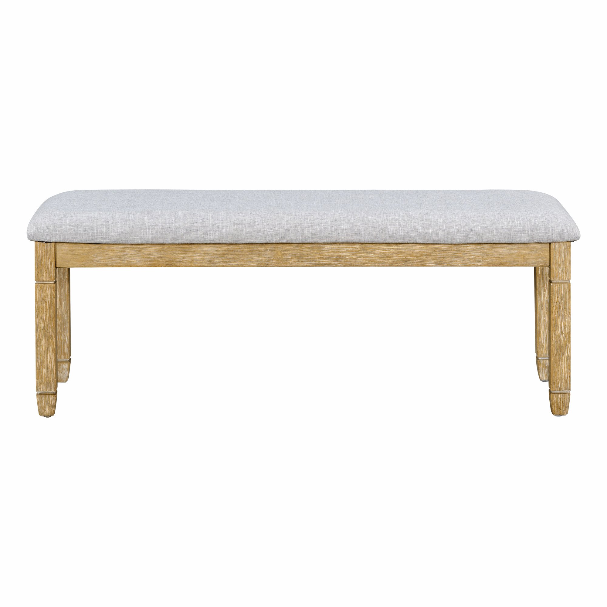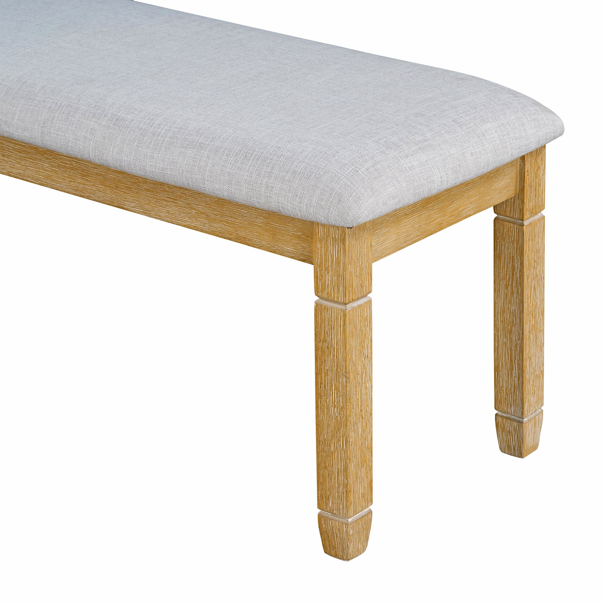 The tabletop is made of MDF and ash-wood veneer with a clear wood texture and smooth touch. As all other parts are crafted of tip-top quality solid rubber wood, needless to say, the dining set featuring excellent durability and stability will serve you for a lifetime. Each chair, as well as the dining bench, is equipped with foam-padded seats underneath smooth and gray fabric for superb comfort. The load-bearing capacity of the table, chair, and bench is separately 661 LBS, 330 LBS, and 440 LBS.